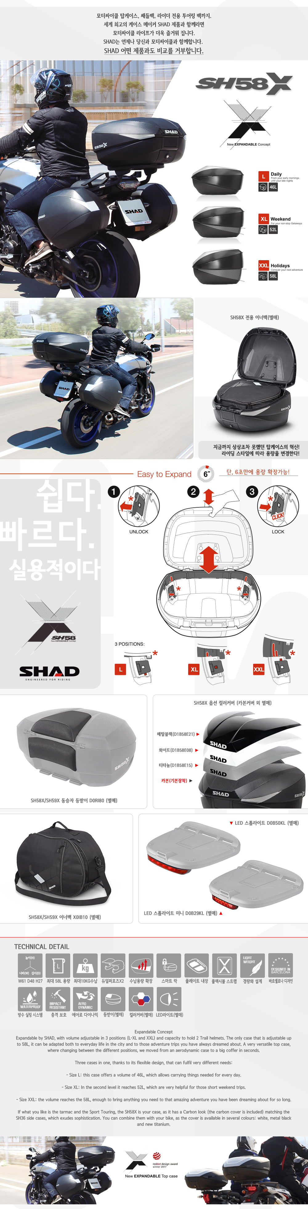 - 모델명: 샤드 SH58X 탑케이스 (+케이스커버선택)