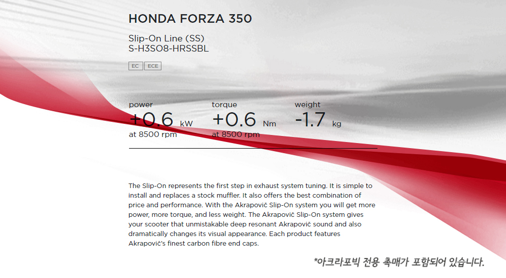 자리매김하였으며 아크라포빅은 혼다, 가와사키 등..