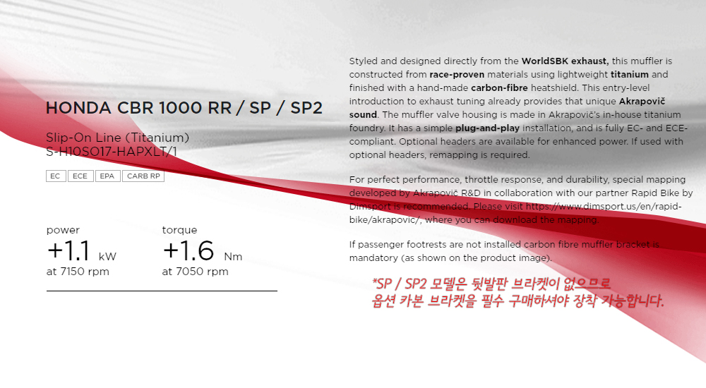 자리매김하였으며 아크라포빅은 혼다, 가와사키 등..